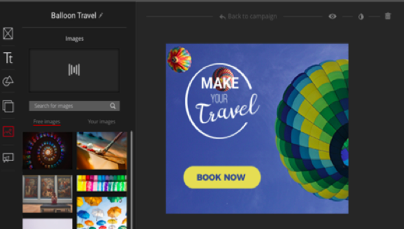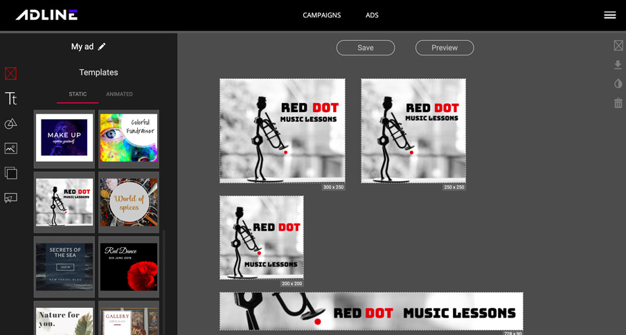 Create an eye-catching ad with moving buttons and texts. Drag and drop.