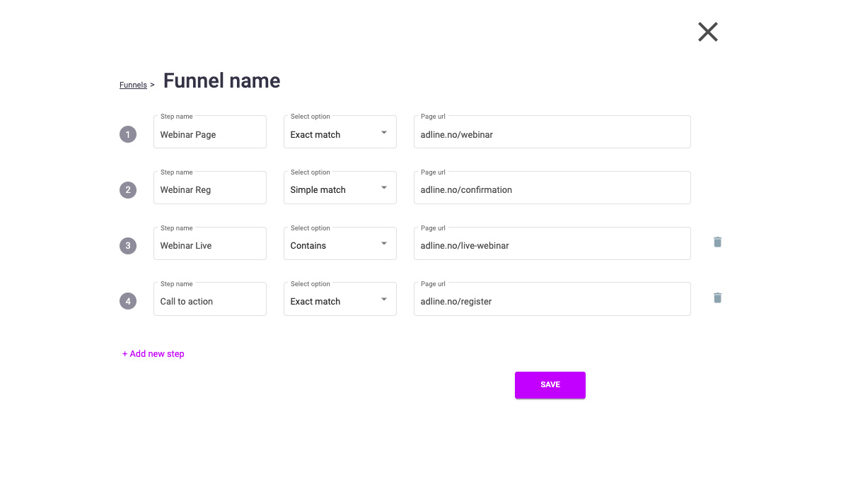 Discover where visitors drop off. Learn how users navigate your site using funnels. Small adjustments can increase your conversion rates through the roof.