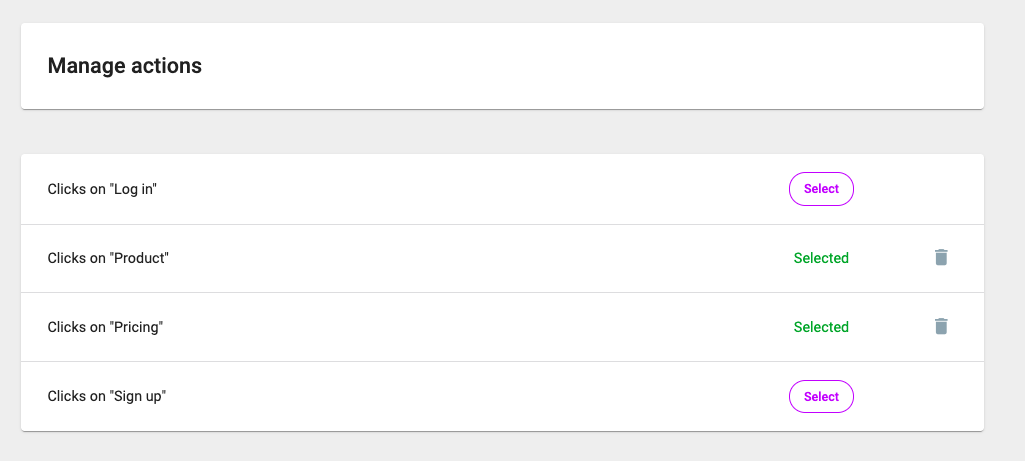 Define – in a click – the action points you want to measure. It couldn’t be easier.